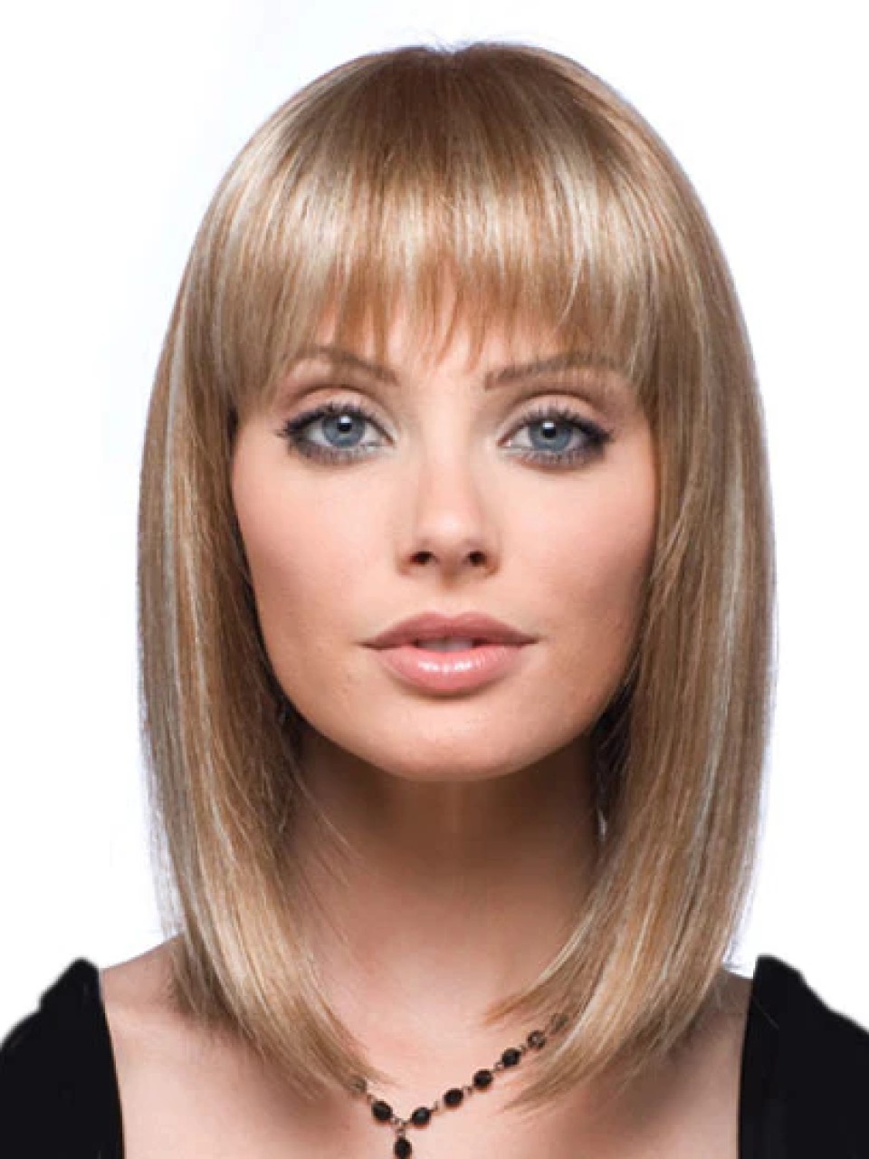 Emilia av Jon Renau en medellång syntetperuk med lugg som har en kupa som har Monofilament Top ..