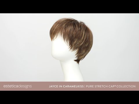 Jayce är en kort modern syntetperuk av Estetica med en Monofilament del vid virveln på hjässan som ger en naturlig hårbotten med en illusion av naturlig hårväxt där håret delas (se bild för kupan och video). En lätt peruk i syntet som med öppen kupkonstruktionen med weft baktill och på sidorna ger bra ventilation vilket ger svalka till hårbotten.